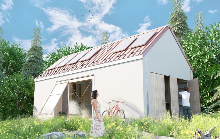 This efficiently planned 30'x15' studio microhome is a relaxing and tranquil long or short term residence for any nature lover. The environmentally friendly design utilizes sustainable building materials, efficient and cost effective systems in order to maximize comfort and longevity of the structure. The simple and small plan makes this an affordable option for anybody looking for the perfect live-in or rental. The plan is includes all amenities a standard home would have in a compact and efficient layout.