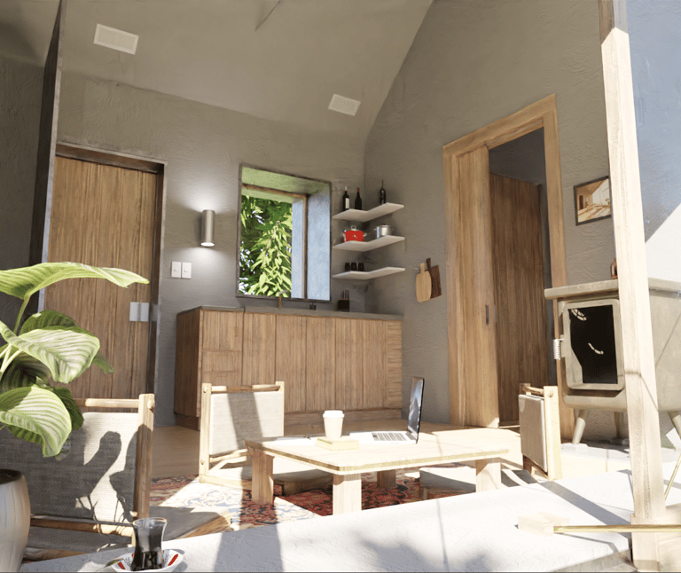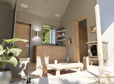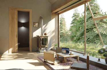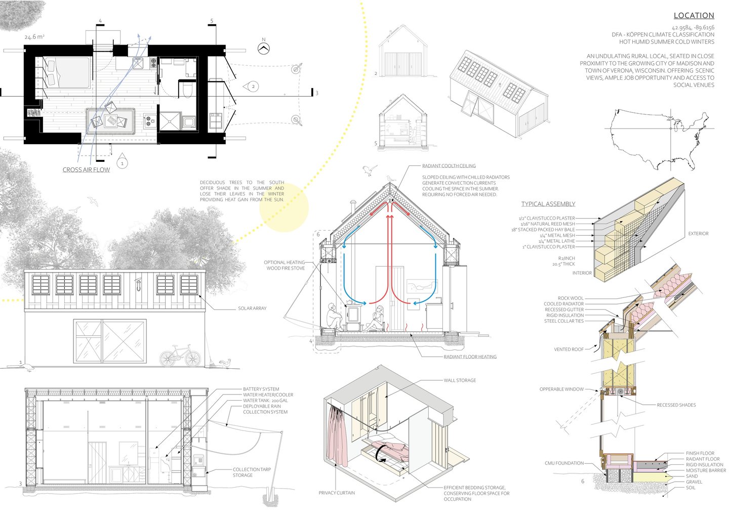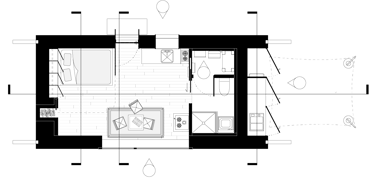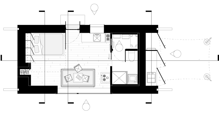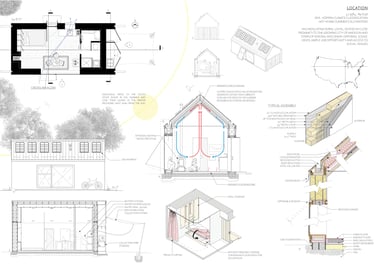 This efficiently planned 30'x15' studio microhome is a relaxing and tranquil long or short term residence for any nature lover. The environmentally friendly design utilizes sustainable building materials paired with efficient and cost effective systems to maximize comfort and longevity of the structure. The simple and small plan makes this an affordable option for anybody looking for the perfect live-in or rental.