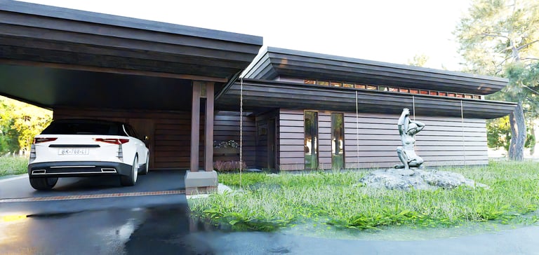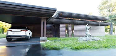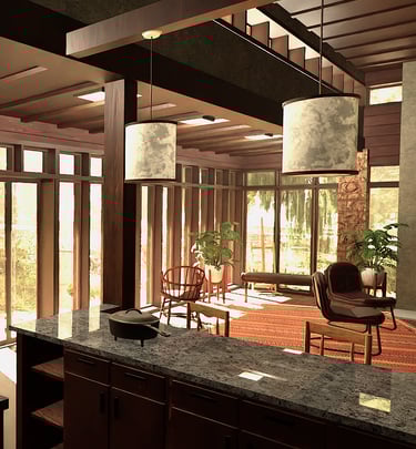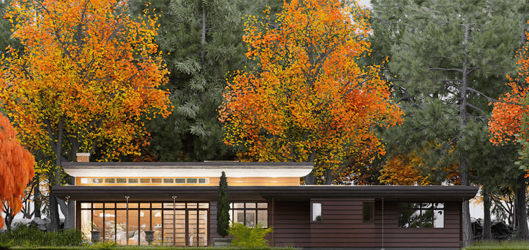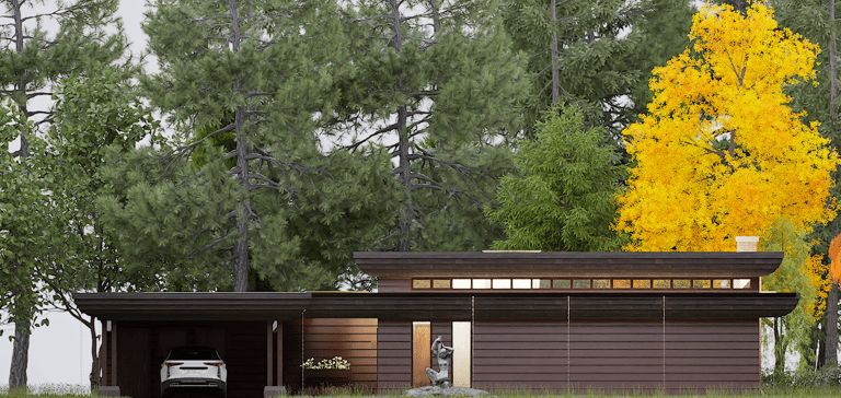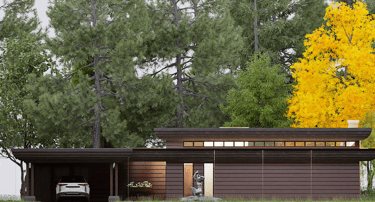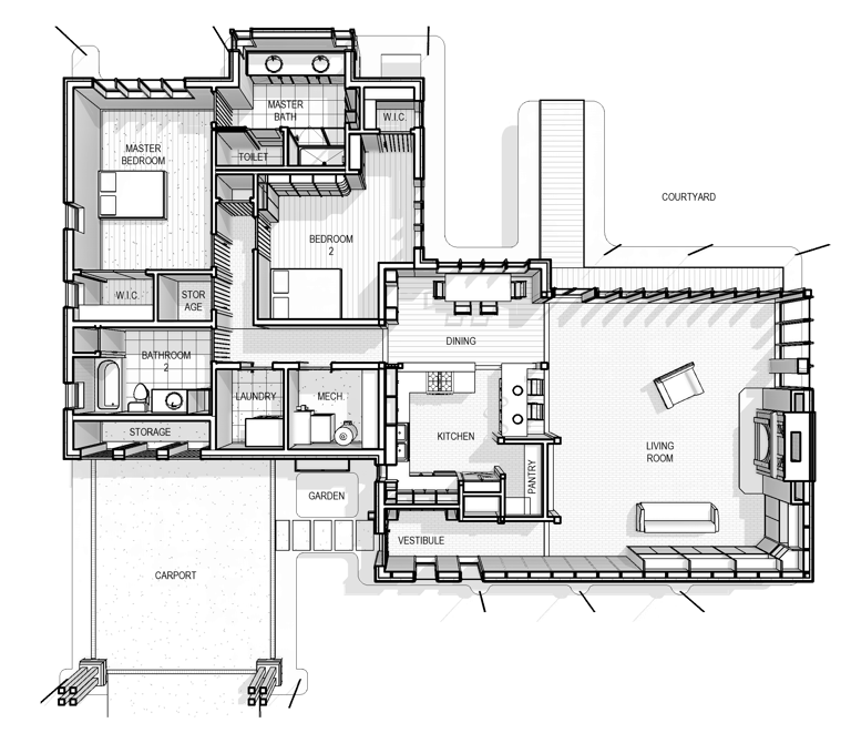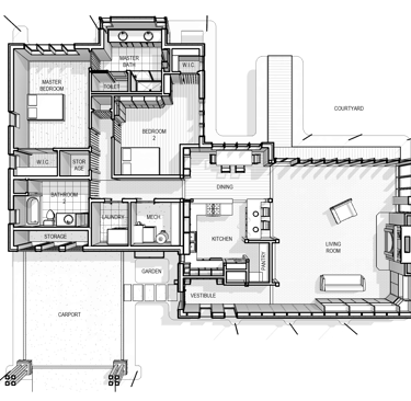 This mid-century modern two bed, two bath single level house is the perfect country retreat for a small family. Design emphasis was placed on the efficient plan which draws inspiration from many of Frank Lloyd Wright designed homes with additional comforts for the modern lifestyle.