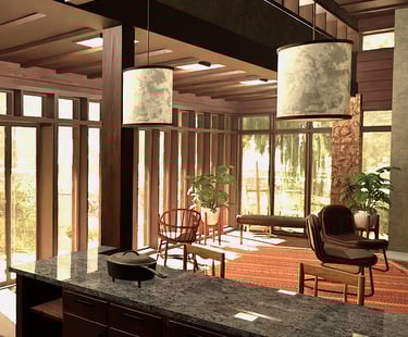 The design intent of this house is to maximize views of nature and allow for beautiful but controlled natural lighting into the space. This makes for a comfortable, well connected home.